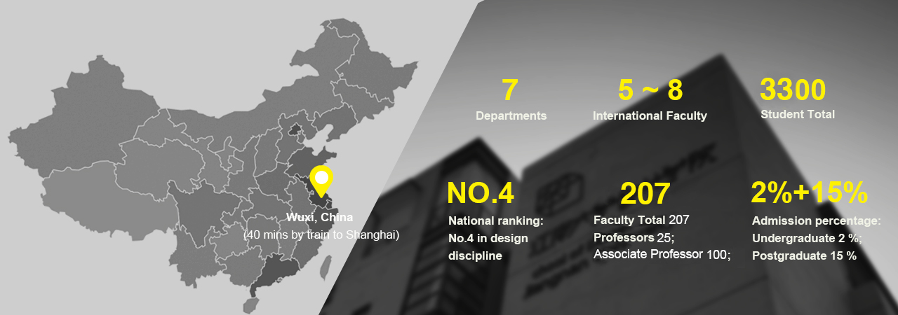 The School of Design at Jiangnan University has a history dated back from the modeling department of Wuxi Institute of Light Industry founded in 1960. It is the main birthplace of modern design education in China, and the pioneer and modeling college of design education reform in China. After over 60 years of construction and continuous reform, especially undergoing the transformation of the new economy and the information industry, it has become a high-level design discipline featuring light industry with distinct influence at home and abroad. It is one of the most active international practice contributors as well as the demonstration base for training outstanding design talents for the industry. As a pioneer in the practice of integrating art and engineering in China, it has won five times the National Teaching Achievement Award, and is the one of the few institutions in the country that is continuously supported by the key construction project of the first, second and third phases of the national 211 Project.