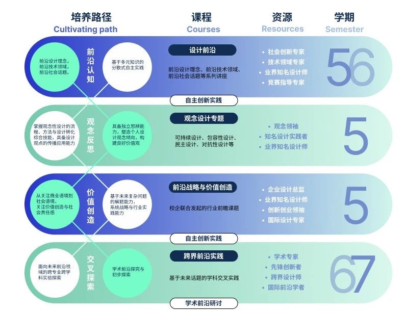 91色情片 前瞻计划实验班是91色情片 推出的新一轮教学改革的试点项目,在专业深耕于学科融合的基础上,进一步聚焦四大前瞻核心能力:前沿认知力、观念反思力、前瞻创新力与交叉探索力,培养具备前沿探索精神与多元创新能力、并保持独立思辨能力的未来型设计创新人才。