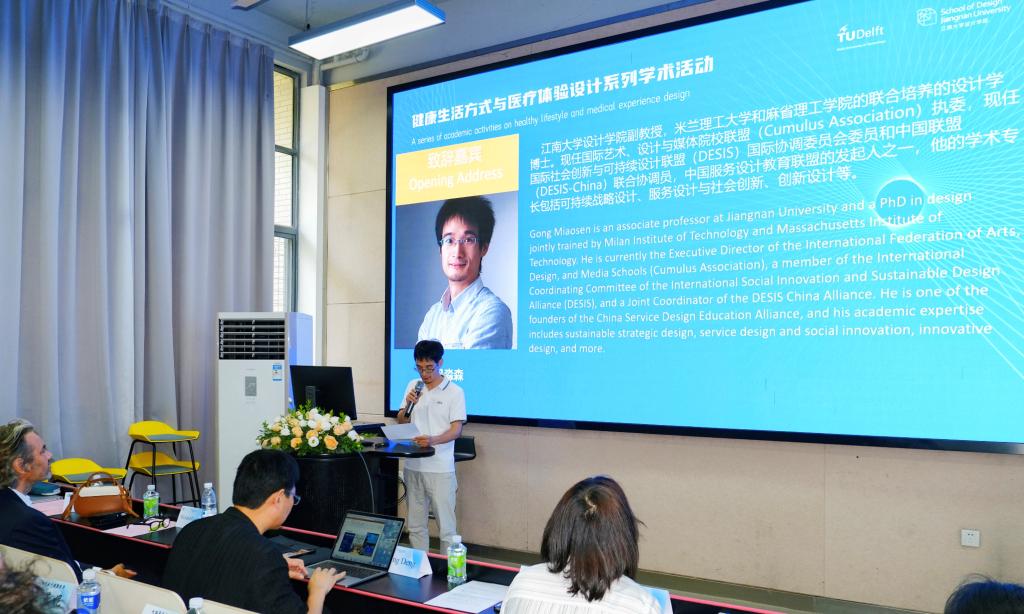 国际医疗健康实验室协调人肖东娟副教授主持,国际艺术与设计院校联盟执委、体验设计前沿方法与技术学科创新引智基地副主任巩淼森副教授开场致辞,无锡市健康医疗集团和华昕设计集团的相关企业代表参加论坛。