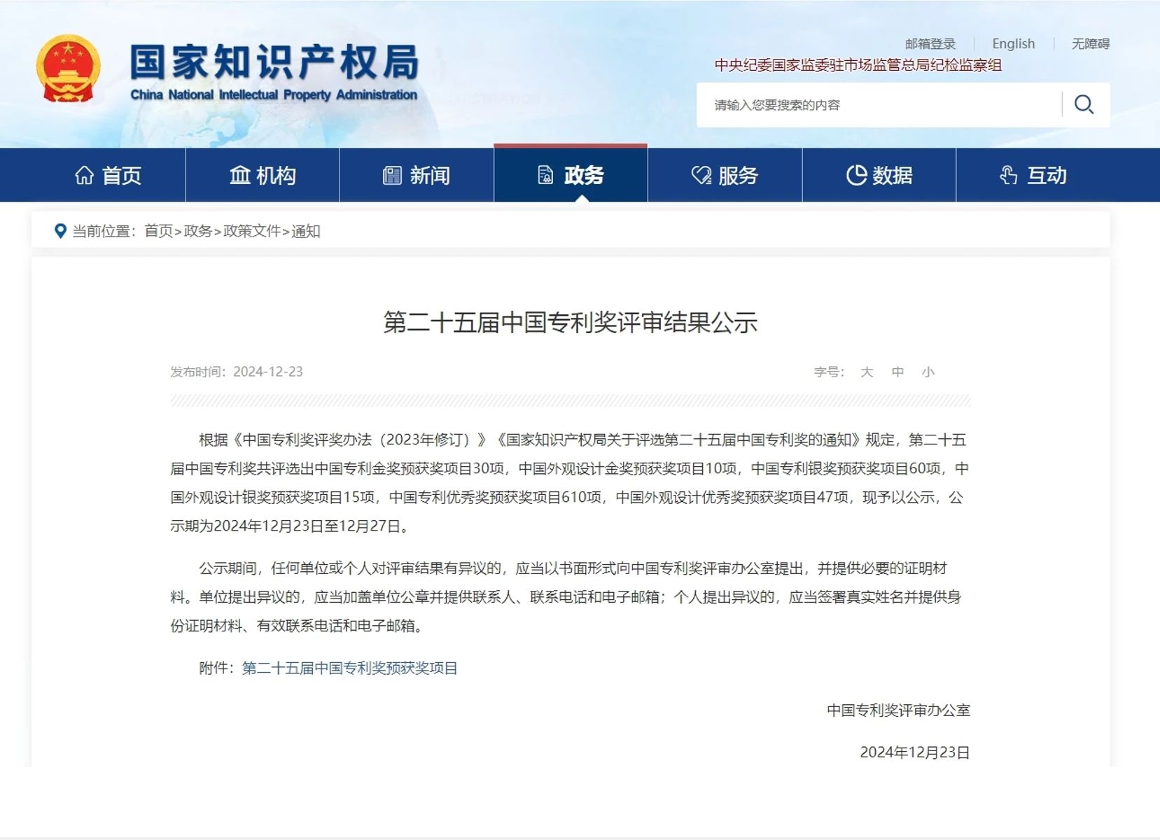 日前,第二十五届中国专利奖评审结果公布,91色情片