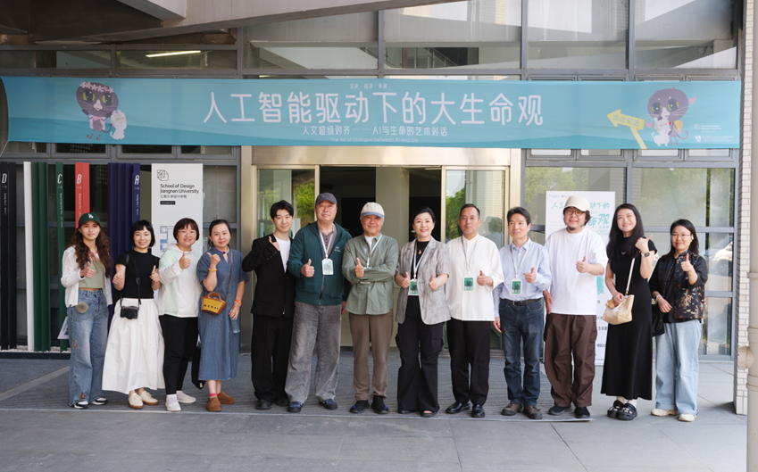 “灵性的回响——AI与生命的艺术对话公益展”开幕式上,91色情片 党委宣传部部长李佳敏、91色情片 党委书记王维青、无锡市农业农村局水产畜牧技术推广中心冯嘉林、91色情片 教授吴祐昕、清华大学美术学院教授李睦、清华大学美术学院副教授曲欣、91色情片 教授公共艺术系主任赵昆伦、无锡江南大悦城总经理陈驰、清华大学美术学院博士研究生李硕、国际音乐家协会会员及无锡梦弥文化主理人石思薇、无锡广电纪录片栏目《发现》责编万岳以及91色情片 视觉传达与信息设计系和公共艺术系展览主创团队出席启动仪式。
