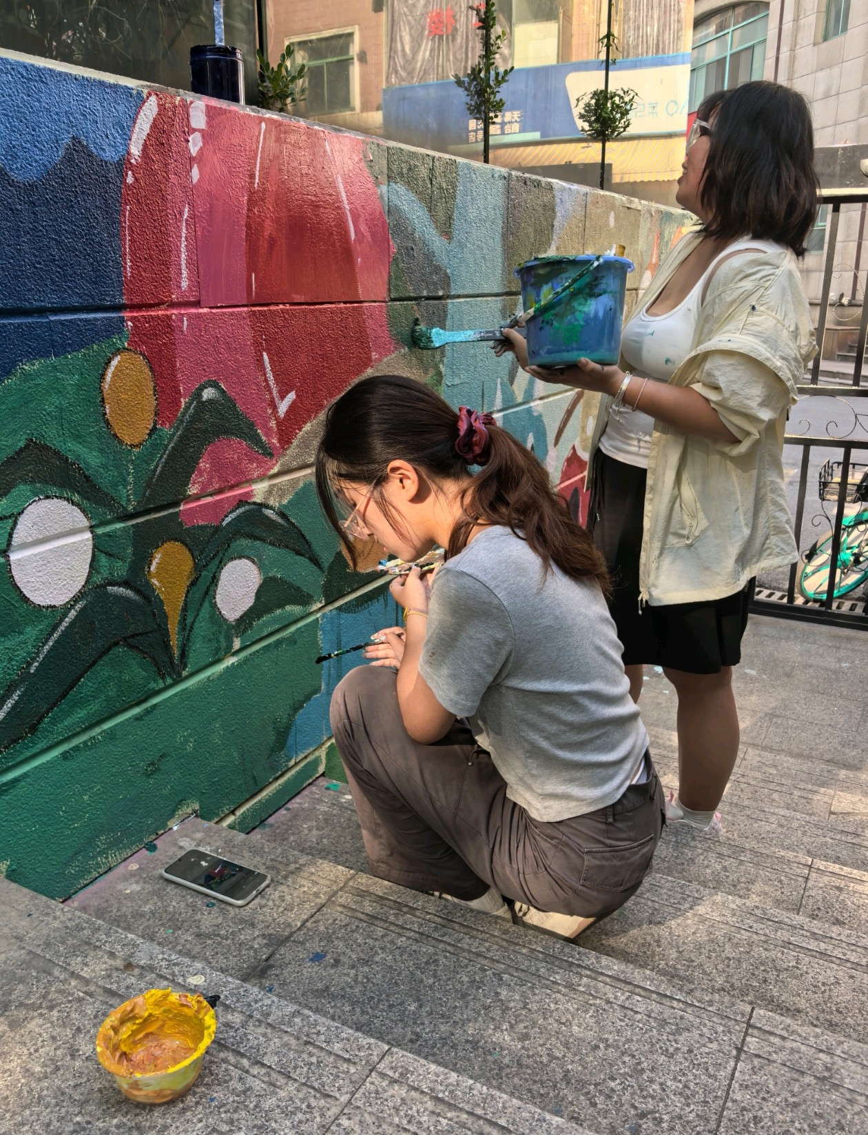 这次墙绘不仅是同学们把专业知识用到实践中的一次尝试,更是他们为社区居民送上的一份心意。同学们用实际行动诠释了新时代青年的责任担当,也让艺术真正走进了社区,走进了居民的生活。