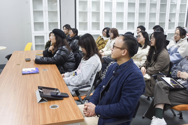 工业设计系主任梁峭副教授主持,研究生梁隆浩作为分享嘉宾,同时邀请到了平安科技设计总监王益作为线上特邀嘉宾进行指导。此次工作坊吸引了来自工设、产品、环艺、视传、公共艺术等不同专业的同学参加,涵盖了大一到研二的各年级同学。