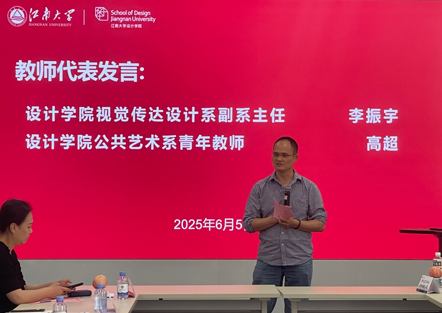 在教师代表发言环节,李振宇指出,视觉传达设计系在课程设置上注重基础与创新并举的设计思维训练,通过项目驱动、竞赛指导等多元化教学方式,帮助学生构建完整的设计方法论和创新能力。高超介绍了公共艺术专业的人才培养情况,指出系部注重学生造型、材料等全方位能力的培养,但目前专业优势在就业市场中未被充分发现,系部将进一步对接企业需求,助力学生进入市场。