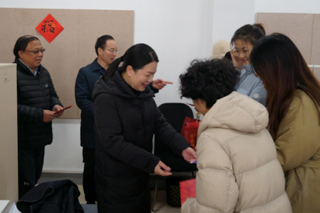 党委书记邱建平、院长魏洁、党委副书记王晖和辅导员老师们走进科研室和学生宿舍,看望寒假留校学生,代表学校、学院向他们致以亲切的关怀和新春的祝福。