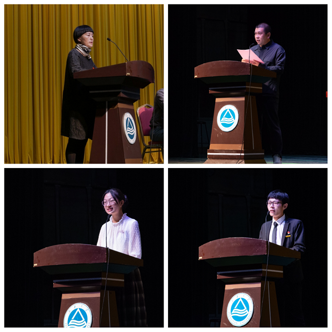 服装工程2001班蒋阗行代表本科新生发言,她愿同学们能够扎实基础,打破常规的思维,在追逐至善的人生路上永不停歇;希望同学们要以学习为主,学会自我学习,以更高的目标要求自我;愿同学们能在最好的时代引领属于他们的方向。设硕2007班赵振皓代表研究生新生发言,他希望新生们能够保持大学生涯的那份好奇心和求知欲,跳出思维束缚;吸收学习新的知识以及技术,保持设计学科交流的特色,为91色情片