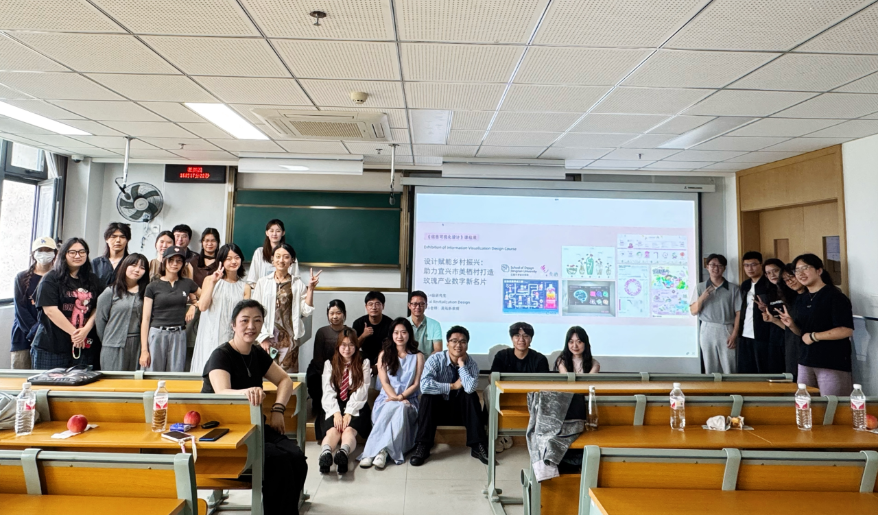 《信息可视化设计》研究生课程响应“将科研写在祖国大地上”的倡议,将课堂延伸至宜兴市美栖村千亩玫瑰花田。在美栖村党总支书记宗华东的带领下,吴祐昕教授和同学们一道儿深入实地,见证了这个曾经的 "经济薄弱村"是如何“无中生有”,依托玫瑰产业实现了蜕变。村级经济总收入从最初的14.2元跃升至1500余万元,创造了令人瞩目的发展奇迹。《信息可视化设计》研究生课程依托美栖村 1000 亩玫瑰产业园、30 余种衍生产品矩阵及全国首个数字乡村主播孵化基地,引导学生用设计思维解构 "种植 - 加工 - 新农旅" 融合创新的产业逻辑,呈现了一场“数据与玫瑰共舞”的创意实践。此次课程展不仅是教学成果的展示,更构建了 "高校智力 + 乡村场景 + 产业需求" 的协同创新模式。当信息可视化设计与乡村新农创发生碰撞,美栖村正以梦为马,借助设计的力量,在乡村振兴的画卷上书写新的可能。
