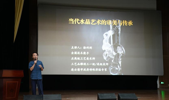 全国技术能手徐利剑向同学们介绍水晶艺术的发展趋势