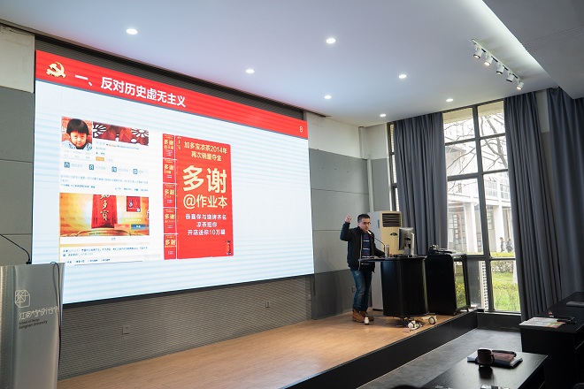 唐忠宝教授从“反对历史虚无主义、树立共产主义理想、坚持全面深化改革、坚定“四个自信””等四个方面,以丰富的案例和扎实的党史梳理,让全体教职工对于党史有了更为深入的理解,更加坚定了对中国共产党领导的信心。