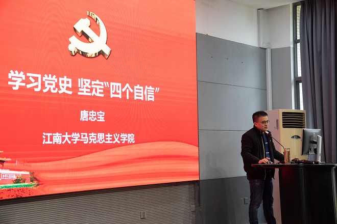 唐忠宝教授旁征博引、深入浅出的报告,将党史教育和现实问题分析联系在一起,让全体教职工通过报告深入学习了解中国共产党的百年历史发展历程和新时代发展观。