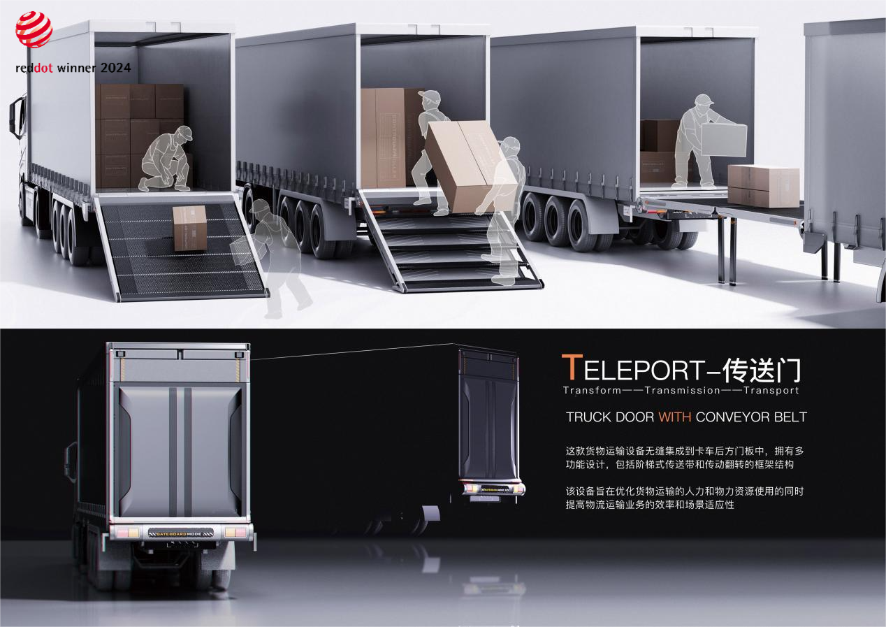 二、Red Dot Award: Winner获奖作品《货车尾板传送门Truck doors with conveyor belt》,指导老师:陈香设计师:潘岁、邓凯睿、郭建宏