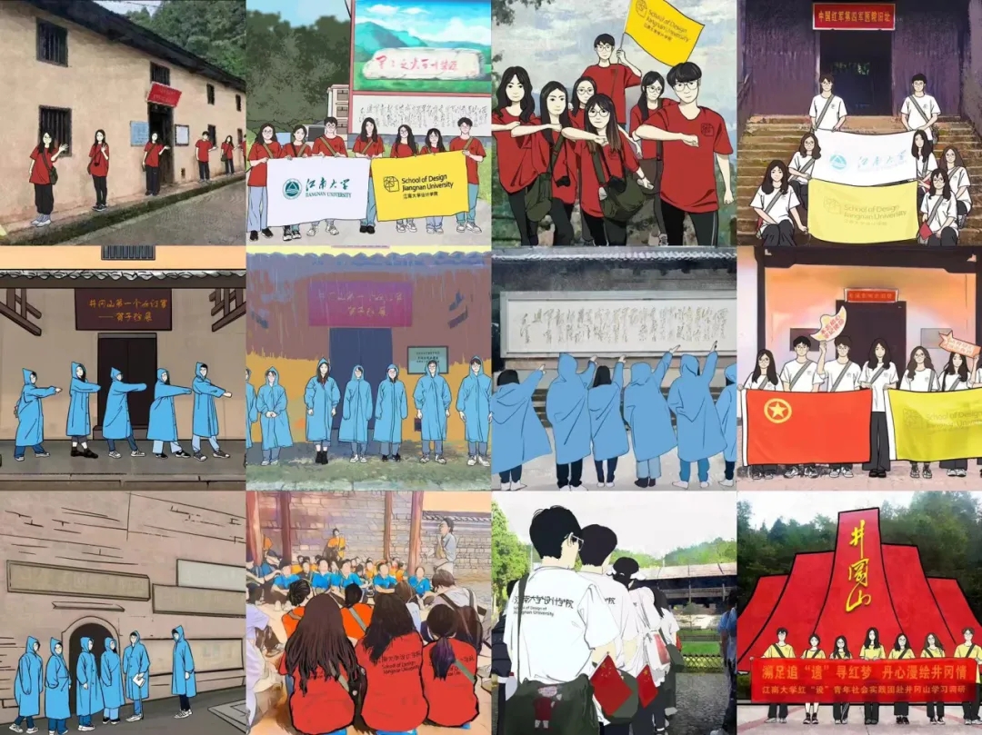 2023年8月,“红'设'青年”团将学科专业特色与红色文化资源紧密结合,探索视觉产品与红色精神创新结合之路,深入井冈山脉9天185小时,追寻先辈足迹12处,拍摄非遗视频60+小时,剪辑视频8个,发布推文11篇,设计系列文创2套,设计系列海报1张,设计卡通系列人物形象1套,手绘红色地标和活动场景50张,制作了一套“足不出户上井冈模型”,因地制宜实现“教育”与“专业”的有效融合。