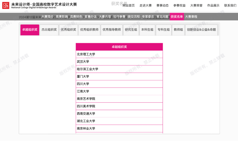 秉持“以赛促学、以赛促教、以赛促研、以赛促改”原则,一直对各类竞赛保持高度重视。积极鼓励同学参与其中,并且深化课堂内容和教学方法的改革,有效提升了学生对课程、对专业学习的兴趣,培养了专业知识的运用能力。本次获奖师生的努力和成就不仅为学院赢得了荣誉,也给设计学科的进步注入了蓬勃生机。学校将继续鼓励师生们投身于顶尖设计赛事,致力于培育能够驱动中国未来创新的设计精英!