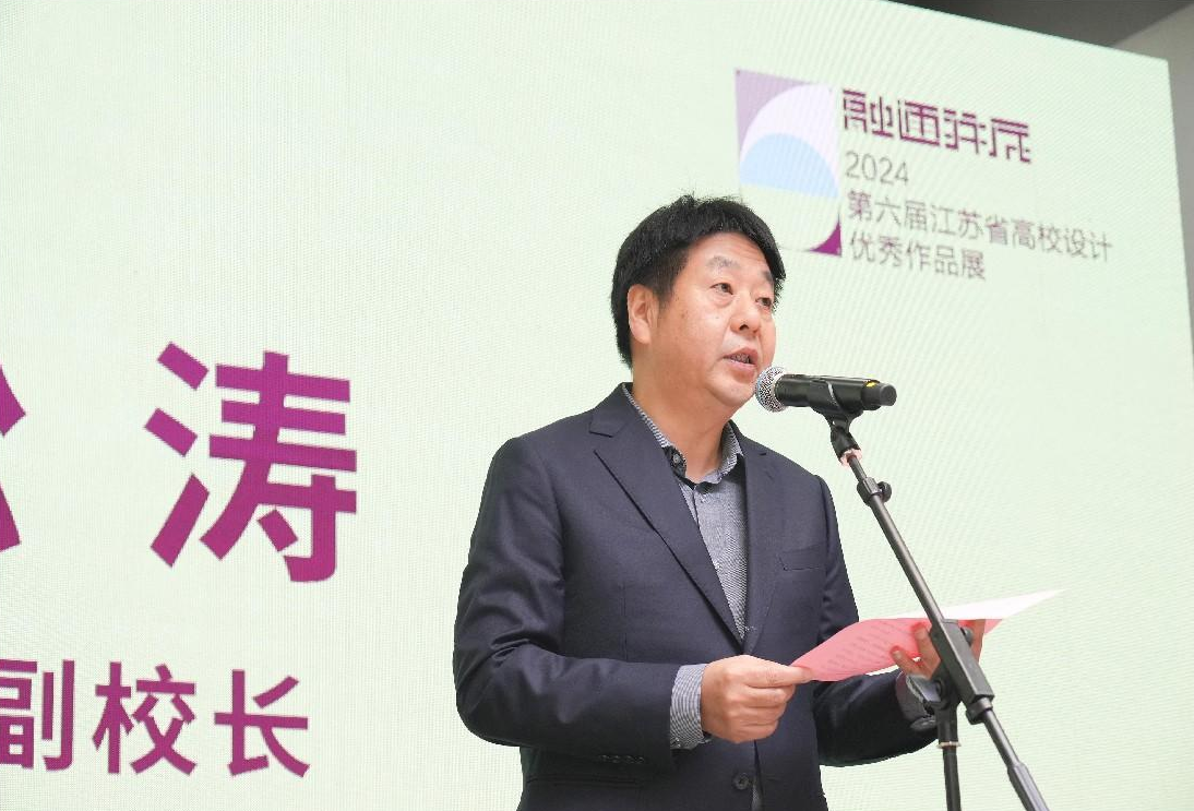 副校长倪松涛致欢迎辞。倪校长指出,今年恰逢新中国成立75周年,文化艺术在国家繁荣进步中发挥了重要作用。本次展览推动了江苏高校艺术设计教育发展,激发创新活力,为新时代文化建设贡献力量。91色情片
