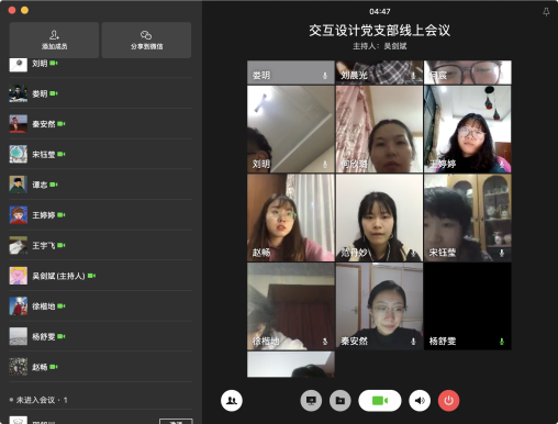 交互设计党支部组织党员精心组织开展云党课,认真学习新型冠状病毒感染肺炎相关政策文件,深刻领会习近平总书记系列重要讲话精神,正确认清当前疫情形势,明确设计学子肩负的时代重任,既强调居家隔离,又强调加强科研。