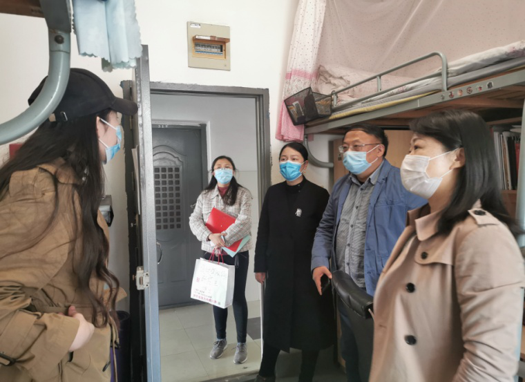 23日下午,院党委书记邱建平、院长魏洁、副书记王晖等一行深入学生宿舍,慰问返校学生,为学生送上口罩、体温计等防疫物资。邱建平亲切询问了同学们的身心健康、学习情况和就业进展,魏洁代表学院表达了对同学们的深切问候,王晖叮嘱同学们必须严格遵守防控期间学校的各项规章制度,做好自我防护,主动配合完成“一日三测”和“晚点名”。