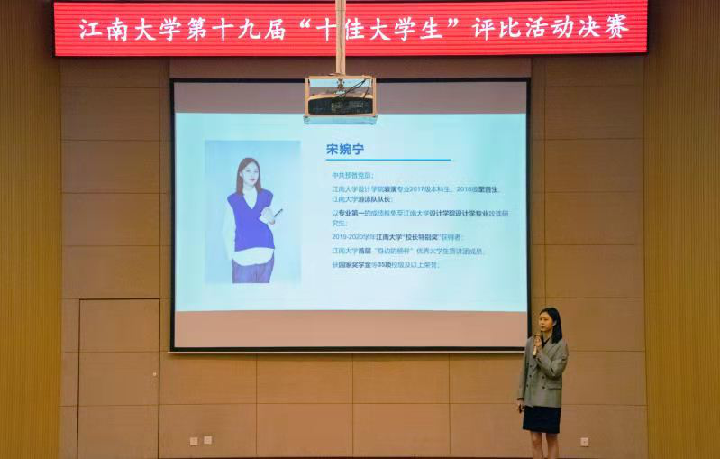 第十九届“十佳大学生”评选活动决赛暨颁奖典礼在商学院远东报告厅举行,我院宋婉宁同学荣获“十佳大学生”荣誉称号。