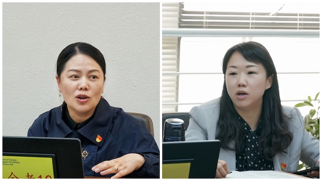 与会人员围绕习近平总书记在清华大学考察时的讲话精神展开热烈讨论。魏洁院长表示:总书记的讲话振奋人心,鼓舞和激励了广大设计教育工作者为国家发展、人才培养贡献力量。百年大计,教育为本。建设中国特色社会主义的一流大学这一目标,对学院的人才培养和学科建设提出了更高的要求,学院应进一步完善培养德智体美劳全面发展的人才培养模式,明确与国家战略、发展方针、人才需求相匹配的学院发展路径;学科交叉相促进,艺术技术相融合。学院应积极拓宽发展视野,充分发挥江南地域文化特色,服务国际民生,展望设计未来;增强文化自信,加强国际交流。学院在现有基础上,致力于打造双向、互通的国际交流平台,成为国际经验的输出者,中国设计智慧的传播者。王晖副书记从如何满足国家人才培养的需求,如何发挥优势学科的特色,如何落实立德树人的根本任务三个角度发表了看法。她表示作为高校思想政治教育工作者,应始终心怀“国之大者”,坚持立德树人根本任务,抓住全面提高人才培养质量这个重点,为党育人、为国育才,把服务国家作为最高追求。同时立足优势学科特色,帮助青年学生深度领悟文化内涵,构建文化自信,肩负起以美育人、以美化人的时代大任。