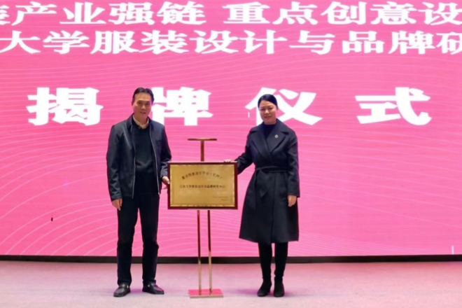 服装设计与品牌研究中心举行了揭牌仪式。俞兵华处长和魏洁院长共同为中心揭牌。