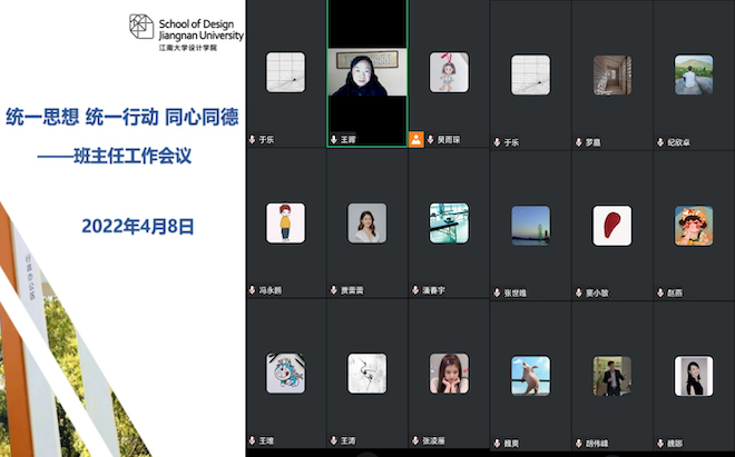 党委副书记王晖主持学院班主任线上工作会议,学院党委书记邱建平、院长魏洁及全体班主任老师共同参会。王晖传达了省、市、区、校疫情防控相关文件精神和工作要求,从严从紧落实各项防控措施。她指出,班主任是校院疫情防控的重要力量,目前疫情防控形势严峻,班主任一要高度重视防疫工作,积极宣传学校疫情防控部署要求,深入学生班级、宿舍,强化舆论引导;二要充分了解学生诉求,有针对性地做好学生重点人群的关注引导工作,进一步增强工作的主动性、针对性和实效性;三要做好毕业生就业和各类困难学生的帮扶工作,关注学生的身心健康,积极解决学生遇到的如就医、离校等实际问题,帮助学生以良好的身心状态投入疫情阶段的学习生活。
