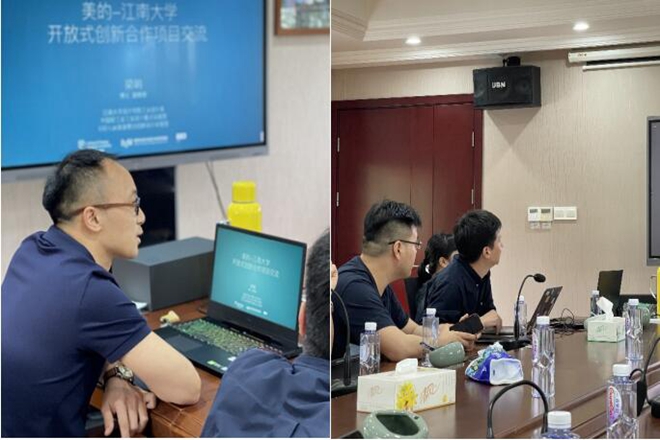 ,副院长曹鸣、工业设计系主任梁峭、副主任周敏宁、院长助理李瑞、院长工作助理沈张帆及梁若愚副教授等出席来访座谈并进行项目交流。