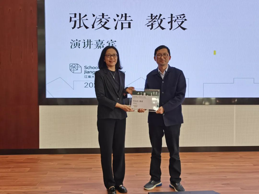 副校长张影陆向张凌浩教授颁发了“设计青山”系列学术大讲堂纪念证书,并期望参加此次讲座的学生开拓视野、潜心研究、做好学术,将来能够成为具有领袖风范的设计人才,同时希望并诚挚邀请张凌浩教授多回学校开展讲座和学术交流,并预祝讲座取得圆满成功。