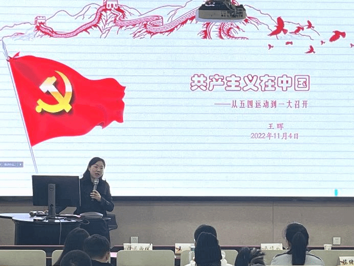 会议最后,党委副书记王晖为与会人员带来一节精彩的微党课。她以叙事的方式带领全体师生回到百年前,感受共产主义在五四运动到中共一大召开这段历史中的独特魅力,重温中国共产党诞生早期的艰辛历程,聆听那个时代青年的呼声,从中获取对当代青年党员的重要启示。王书记带领大家重温习近平总书记在二十大报告中对青年的殷切期望,勉励各位同学要充分发挥先锋模范作用,深刻牢记青年、党员、设计人的使命,自觉强化立足中国面向世界的问题意识,将一代代青年赓续传承的红色基因转化为成长成才的扎实本领,在中华民族伟大复兴的新征程上跑出当代设计青年的最好成绩!最后,她结合会议整体内容对各位学生党支部书记提出三点要求:一是做政治上的明白人,拧紧支部全体党员的思想“总开关”;二是做支部工作的内行人,挥好支部规范化、标准化建设的“指挥棒”;三是做引领支部发展的带头人,奏响当代青年许党报国的“最强音”。
