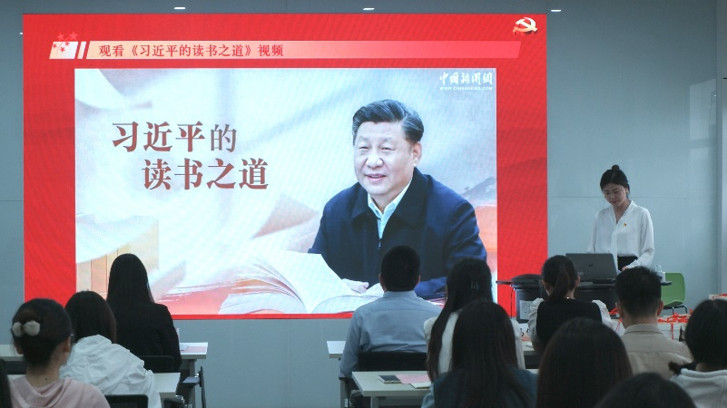 与会人员共同观看了《习近平的读书之道》视频,了解习近平总书记“书迷”这个广为人知的身份。视频中习近平总书记“我爱好挺多,最大的爱好是读书,读书已成为我的一种生活方式”“读书可以让人保持思想活力,让人得到智慧启发,让人滋养浩然之气”等深情寄语让与会人员深受触动,纷纷表示会以此次读书会为契机,养成爱读书、读好书、善读书的好习惯,通过阅读获得思想启迪,树立崇高理想,涵养浩然正气。