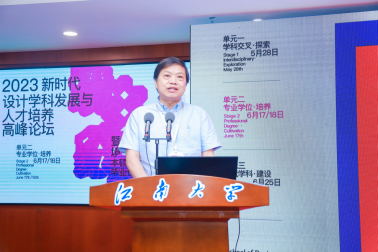 李海明以《设计学科专业学位的培养与建设》为题进行了主旨报告,他指出:我们需要重新审视导师自身的基本素养,需要不断地自我更新、自我提升,并强调了导师培训的重要性。同时还结合研究生课程建设、学位论文评价标准与管理有效指导等进行了充分的案例论证,指出需要进一步明确学术型与专业型研究生的差异化培养和评价等。