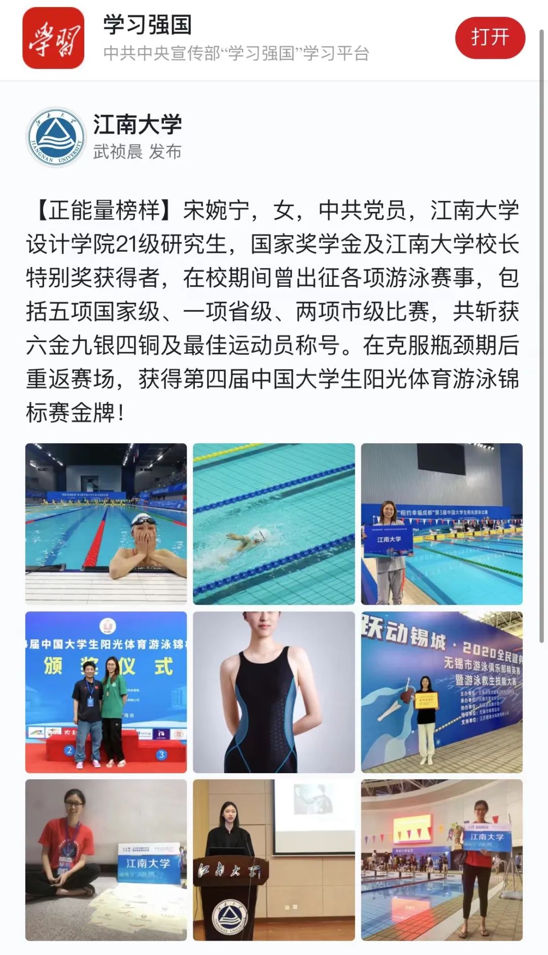 宋婉宁同学事迹登陆学习强国平台