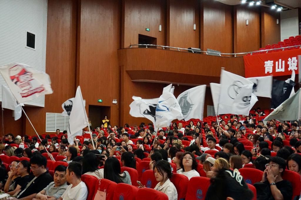 随后举行新生班主任聘任仪式。学院领导为新生班主任颁发聘书,学生代表为新生班主任献花,新生班主任为学生佩戴院徽。仪式不仅体现了学院对班主任工作的高度重视,也体现了青山设计薪火相传的理念。今年开学典礼加入了班风班貌展示环节。23个本科班级代表依次上台发言,带领班级成员喊响各自班级的口号。台下每个班级自己设计的班旗挥舞,与台上遥相呼应。班级班貌展示意在推动班级文化建设,增强新生的班级荣誉感和专业认同感。