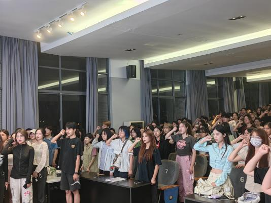9月27日,辅导员滕影、韦旺针对因课没能参加动员大会的同学们进行再次动员和培训,两位老师向与会同学们详细介绍了军训期间的训练内容、日程安排,并对同学们的军容风纪、生活制度和纪律等提出了严格要求,希望同学们能够在“先苦其心志”中“增益其所不能”,以坚定不屈的斗志和勇往无前的魄力续写青春荣光。