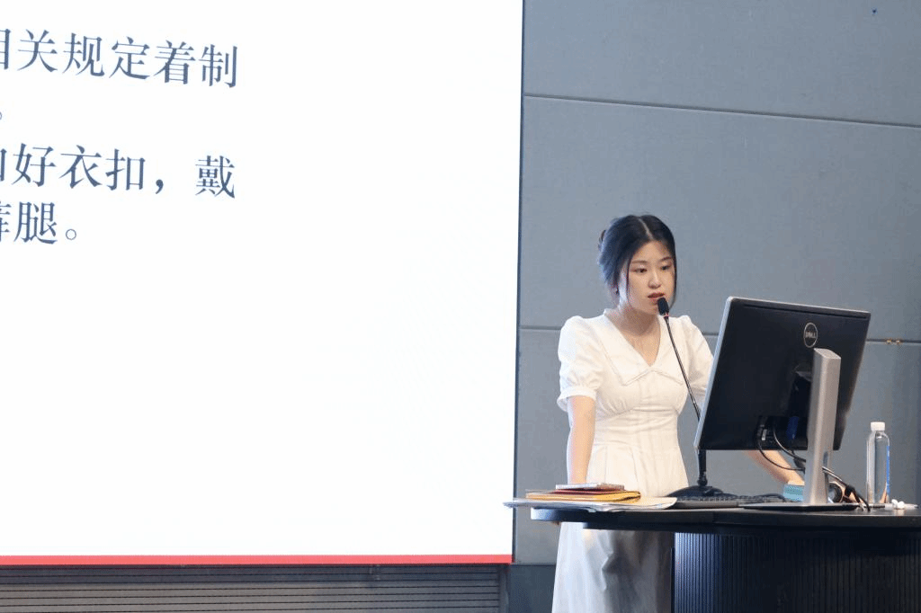 随后,学院党委副书记、副院长江琳娜向同学们致辞。她强调,军训是大二生活的良好开端,也是重塑自我的良好契机,希望同学们在14天的“自讨苦吃”中领略军人不怕吃苦、顽强奋斗的精神,感受军人言出必行、坚毅果敢的品质。最后,她对同学们提出了三点期望:一是在军训中夯实爱国主义精神,用家国情怀引领设计人生;二是在军训中增强集体荣誉感,用团结奋斗点亮设计之光;三是在军训中砺顽强意志,用不懈奋斗成就设计未来。