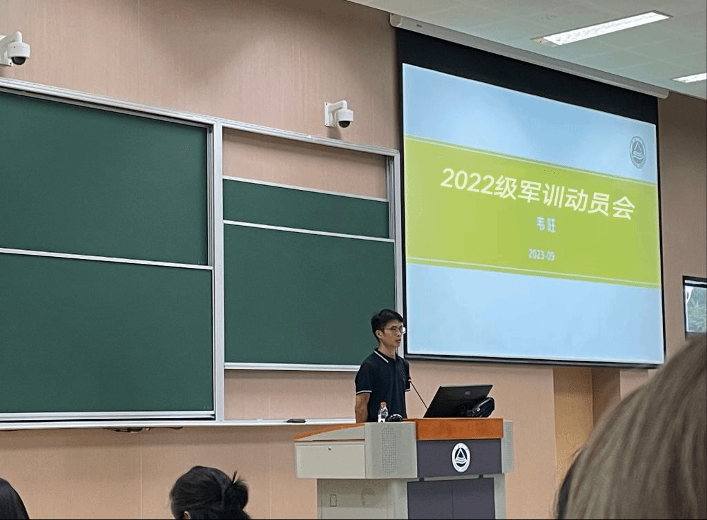 人武部军事训练科科长刘璇刚进行军训动员讲话。刘老师指出,同学们要端正态度,认清军训的意义,以高昂的热情、积极的精神面貌和顽强的毅力投身军事训练;要磨炼意志,锻炼品质,以军人标准严格要求自己,练出钢铁作风、军人味道、战士品格,努力成为堪当民族复兴重任、文武双全的时代新人。