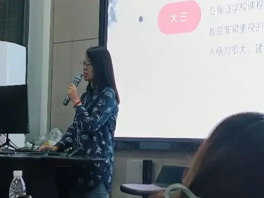 保研同学代表徐洋、黄梓萌、姜孜涵、叶敏妍同学分别从保研的时间线与具体准备,如何在学科竞赛拿到良好成绩,作品集介绍三个方面进行经验分享,并详细介绍了进入高校夏令营的信息搜索、自身能力需求、所需材料等准备步骤以及投递步骤,还根据自身的经历,介绍了线下夏令营的流程和感受。