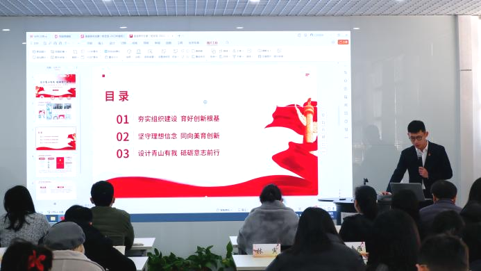 党委副书记兼副院长江琳娜对本次学生党支部书记的述职情况进行综合点评。她首先代表学院党委对各支部书记及支委这一年的辛勤付出表示感谢,并表示,各支部书记作为支部党建工作“第一责任人”在过去的一年中团结带领支部党员完成了各项工作,使得“三会一课”制度扎实完善、“七个有力”举措落实到位,“一支部一特色”品牌创建卓有成效,有效促进了支部党员先锋模范作用和支部战斗堡垒作用的良好发挥。在肯定成绩的同时,她也就进一步抓好基层党建工作提出了三点要求:一是抓“融合”,全力推进党建与事业发展“一融双高”,以党的创新理论的学习牵引推动设计价值的实现;二是抓“共建”,深入探索“党建共建”的创新机制,在不断“走出去”的校企联动中激发党员队伍的活力和创造力,持续擦亮支部品牌;三是抓“落实”,合力引领支部党员充分发挥先锋模范作用和文化传播能力,用心用情落细落实“我为群众办实事”举措。