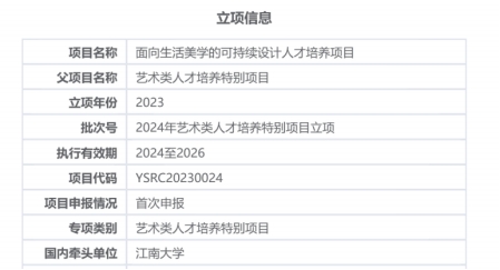 该项目将助推我院引领性艺术类人才培养体系的建立,支持生活美学的可持续发展,进而促进生活和艺术在设计维度的进一步结合!