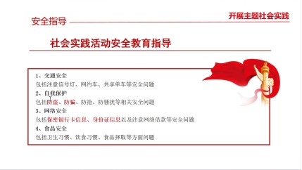 张凌雁对同学们的假期实践做出安全提醒,希望同学们在充实自身软实力的同时,首先要注意交通安全,对现阶段社会发展所出现的网约车,共享单车等开放性交通工具多提升辨别意识,把控危险风险。其次是主义自我保护,要侧重关注防盗,防骗,防骚扰,防诱惑的安全问题,做一名健康智慧的新时代大学生。再次是关注网络安全,谨防网络诈骗,保护个人身份信息,银行卡等重要账号与密码。最后指导同学们关注食品安全,包括卫生习惯,饮食习惯,食品遴选,为健康生活做好现实基础。