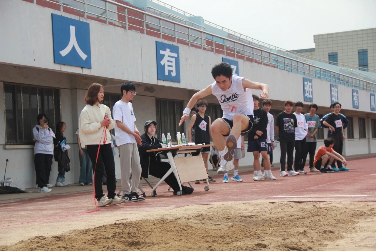 在径赛中,选手们如同脱弦之箭般飞驰在跑道上,每一步都显得那么坚定有力。观众席上,同学们的加油声此起彼伏,为运动员们注入了无穷的动力。接力赛中,团队的默契配合和传递速度成为了胜负的关键,每一次接力都让人心跳加速,感受到了团队合作的力量。田赛赛场上,着陆时带起的沙花,是他们短暂飞翔的见证,每一位运动员都在用自己的方式诠释着“更高、更快、更强”的体育精神。
