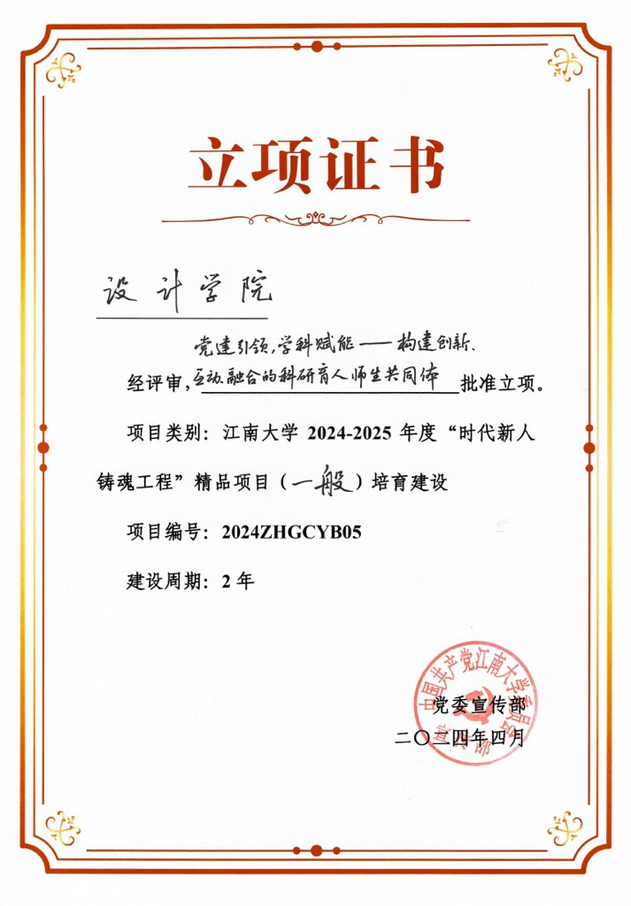 2024—2025年度“时代新人铸魂工程”精品项目立项证书