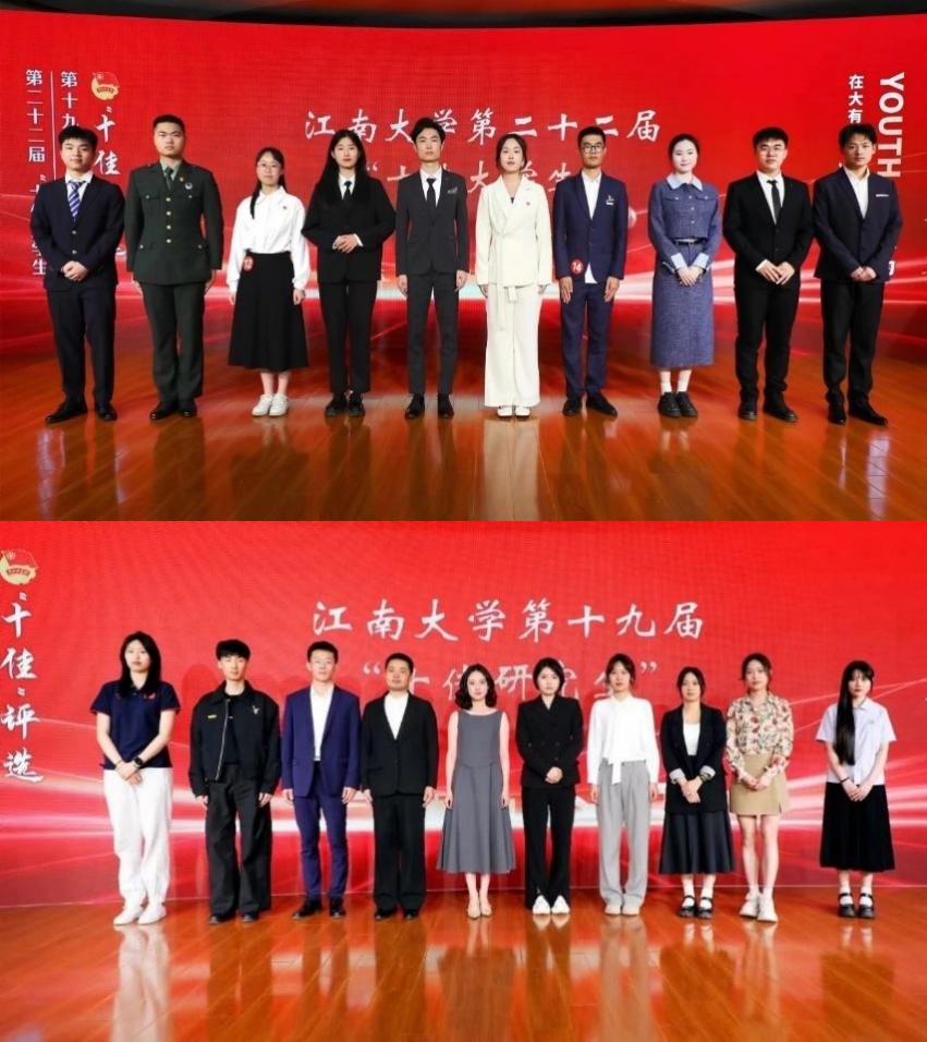 “十佳大学生""十佳研究生“评选活动是学校选树学生先进典型的品牌活动。本次活动遴选出的“十佳”学子们身体力行,深刻践行了"笃学尚行,止于至善”的江大校训,展现了有理想、敢担当、能吃苦、肯奋斗的新时代好青年的风采。