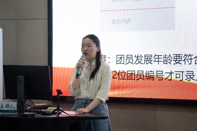 5月28日晚,校团委组织部闫嵩涵同学从基层团组织职责、新团员发展工作、智慧团建常见问题三个方面与大家进行了深入详细的交流。她鼓励同学们在参与组织团学活动中充分发挥生力军和突击队的作用,在校内外充分发挥团员的模范带头作用。在团员发展过程中,要坚持标准,严格按照发展程序,工作认真负责。