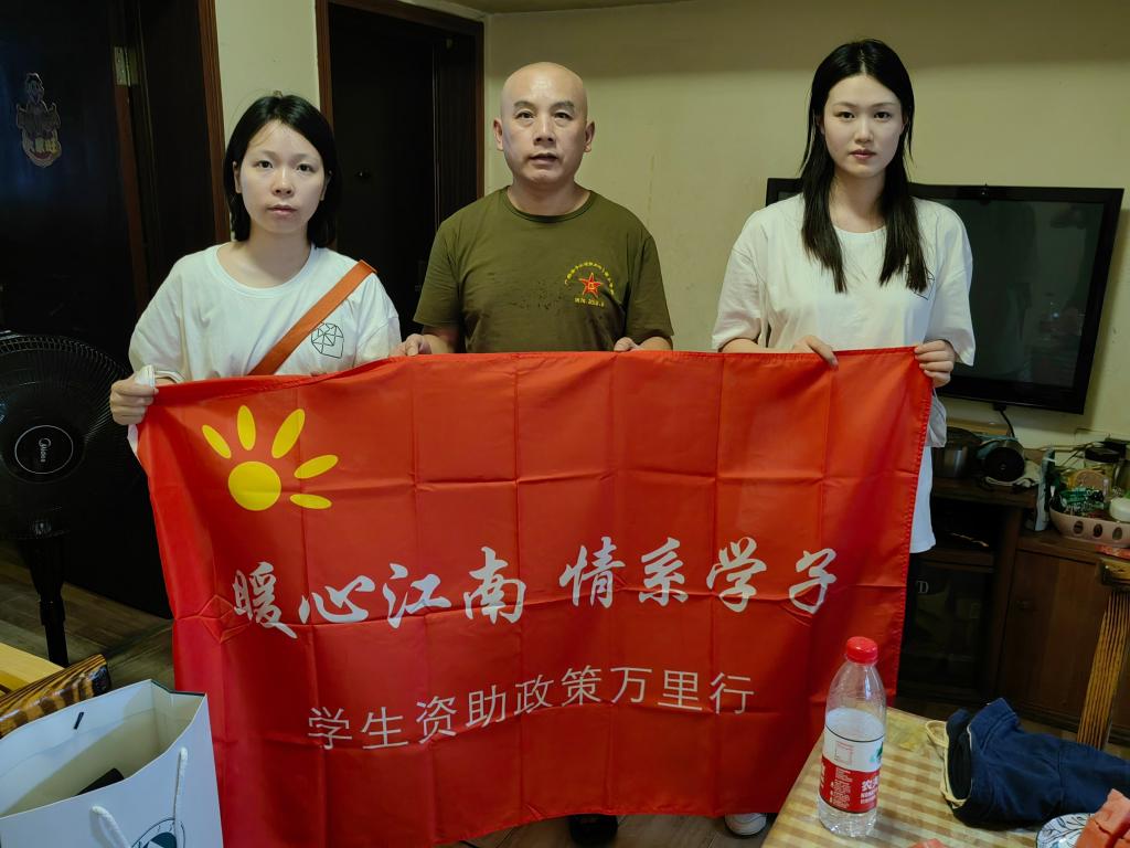在读的家庭困难学生进行家访,为走访家庭送去慰问品,并与学生家长交流,实现点对点帮扶。