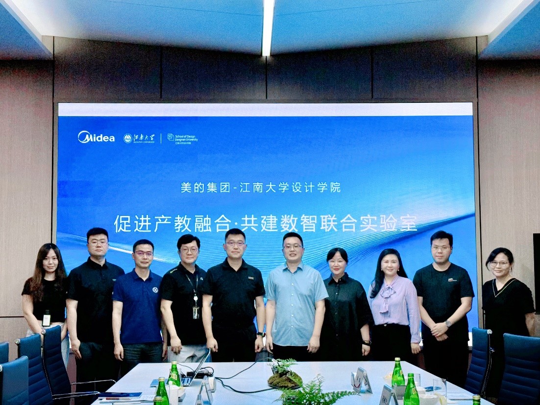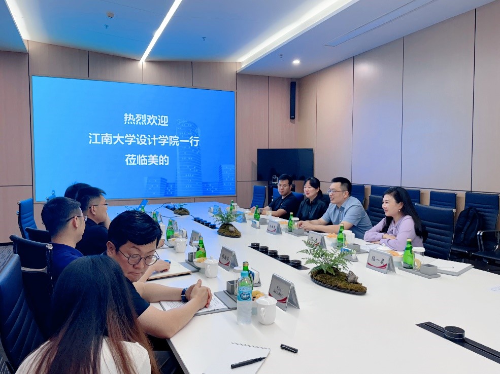 党委书记王维青带队,中国轻工业工业设计重点实验室主任周敏宁教授、工业设计系李瑞副教授、陆一晨副教授、产品设计系陈香副教授一行访问美的集团,洽谈校企深度合作、科技创新、协同育人、共建数智联合实验室相关事宜。美的集团副总裁兼家用空调事业部总裁赵磊、家用空调事业部研发体系主任缪雄伟、家用空调事业部运营与人力资源总监孙昱寰、家用空调事业部研发体系工业设计部长KIM JOONSUH、家用空调事业部研发体系工业设计高级工程师张艳参加会谈。