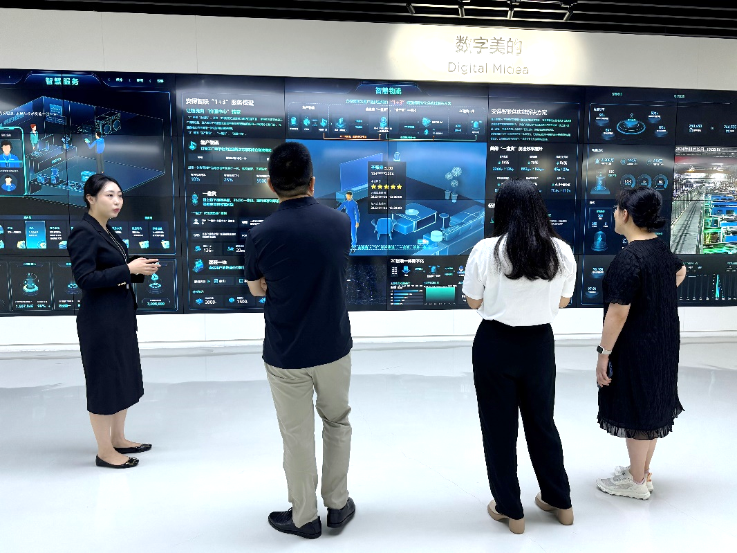书记、教授一行表示热烈欢迎,并简要介绍了美的集团近年发展情况与未来科技部署。美的集团目前已成为集智能家居、工业技术、楼宇科技、机器人及自动化、数字化创新业务五大板块为一体的全球化科技集团,连续多年入选《财富》世界500强,2024年排名上升至第277位。美的集团通过数字化、智能化科技创新,10年间在数字化转型领域投入了超过170亿元,成立AI创新中心、美的软件工程院、建立美的云数据中心、成立隐私计算联合实验室,成为中国轻工业“数字化转型的典型样本”。美的对数字化探索已经进入了“深水区”:以统一、可靠、安全、高效的数字化底座,构建智慧家居、智慧楼宇、智慧能源、智慧出行、智慧医疗、智慧物流、智能制造等“北斗七星”型数智领域。