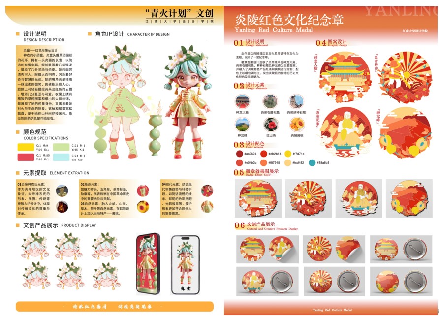 以文促创,以创彰文,通过创新与设计增强文化传播力影响力,团队成员以红色革命文化、炎帝神话、地方特产为灵感,结合现代技术,为当地打造一批既能满足人民文化需求、又能增强人民精神力量的文创作品,以文化为纽带,连接城乡,促进经济与文化的双重发展,助力乡村振兴。