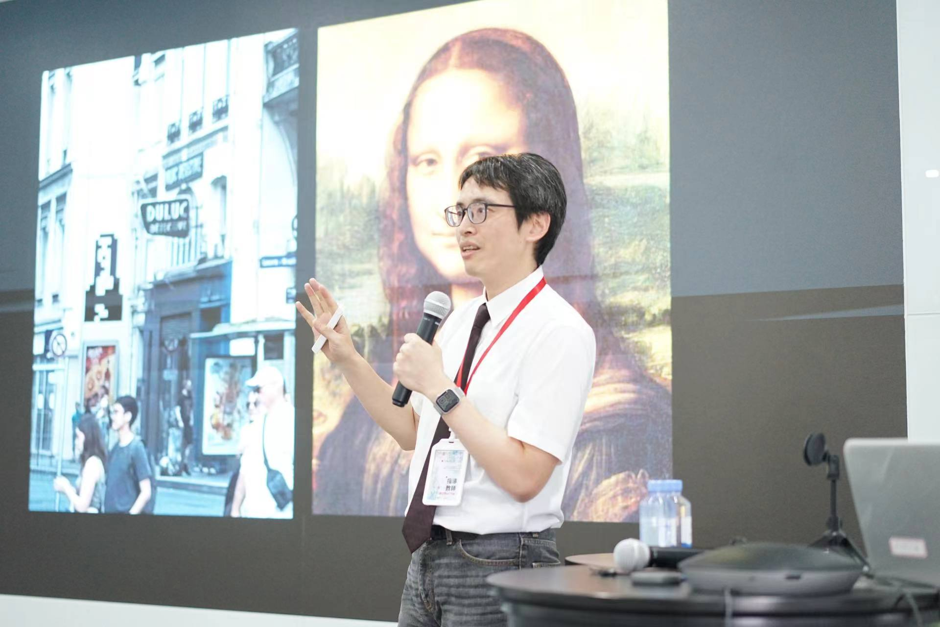 台湾铭传大学商品设计学系主任卫万里教授以《薛丁格的不确定性?设计思维决定Z世代的未来成像》为题,引发薛丁格的猫定义的思考,并以此散发到对设计的影响。卫万里教授系统阐述了艺术和设计的关系、设计与人的关系,并指出设计的本质源于人的需求。他提醒同学们做设计的时候一定要大胆地去做,不怕困难,这样才会有一个满意的结果。