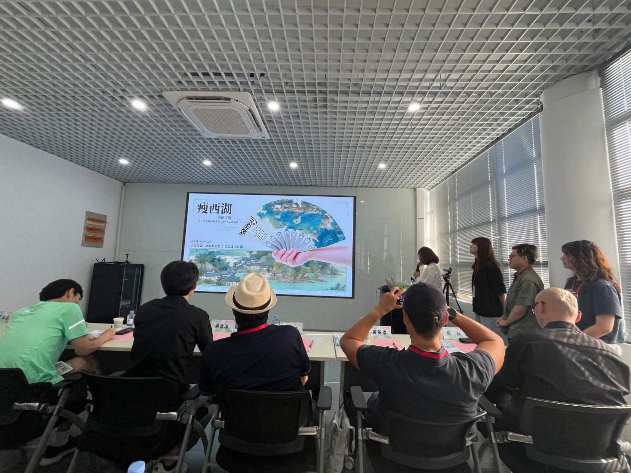 第一组的主题为“蓝染童梦”。作品以蓝染技艺为基础,设计创造蓝印花布自制体验包,组员们希望通过这个体验包,可以引发两岸的文化公民,引领新一代的年轻人传承传统技艺。第二组的主题为“蓝回”。设计基于蓝染的旧衣回收进行UI设计,在这个过程中组员们将传统服饰水田衣与设计结合,针对不同客户群体进行个性设计,有效地将传统文化与现代技艺精妙融合。第三组的主题为“水墨江北”。组员们希望通过江苏南部与江苏北部的文化差异和碰撞,更好地传承民俗文化。他们以采风城市---南通为设计背景,用南通城市logo为印章灵感,结合南通当地传统建筑为蓝本进行创作,对文创产品进行设计。第四组的主题为“自由之顶”。组员们以蓝印花布为基础进行帽饰设计,希望通过此次设计可以将传统文化与现代设计相结合,给客户提供更高质量及个性化定制。第五组的主题为“城巡古巷”。基于大运河博物馆为创作背景,进行博物馆展厅的游戏体验设计。可以帮助参观博物馆的游客们增加与场馆的互动性。在展馆中不仅可以游戏解密获得礼品,可以更好找到队友,定位实时位置。第六组的主题为“‘蓝’驻杯具”。组员们希望设计可以贴近年轻客户群体,将谐音梗、蓝印花布、水杯三者结合。互联网时代,一句诙谐幽默的谐音梗标语可以迅速抓取消费者的注意力,增加用户黏合度。以“‘蓝’住杯具,幸福就来惹”为slogan,既能体现产品特色,又不失幽默氛围。第七组的主题为“瘦西湖文创设计”。组员们首先介绍了设计背景和灵感来源,随后展示了他们设计的用户旅程图,游客们可以通过参与打卡获得礼物,而后展示他们的最终成品,将瘦西湖建筑与扇子进行结合。第八组以蓝印花为灵感,进行个性头像设计创作。组员们通过分析蓝印花的特点和工艺,带入年轻族群的视角进行创作,充满创意和趣味。