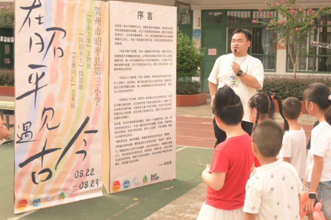 8月23日,持续5日的筑梦夏令营之旅落下帷幕。为了展示学习成果、进一步提升学生民族自豪感与责任感、巩固夏令营知识,团队为孩子们精心策划了一场特别的展览——《在昭平遇见古今》。展览分为三个板块:“华彩万象”博物馆文物展、“风韵乡土”昭平风俗摄影展以及“艺梦同汇”营员手工作品展。在展览的末尾,团队还准备了文创义卖集市,等待着孩子们的光顾,义卖收入拟在后期全部捐给希望工程。孩子们在游玩中学习,与历史对话,与未来牵手,体验了一段跨越时空的艺术之旅。展览结束后,孩子们还进行了一场文艺汇演。在阵阵悠扬的歌声中,此次夏令营圆满结束!