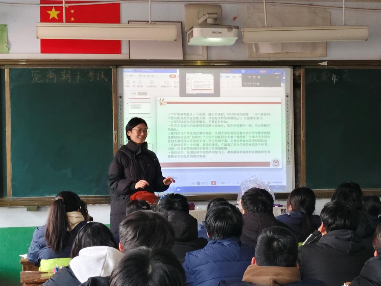 的学习生活点滴,展示了丰富的校园文化和先进的教学设施,引发同学们浓厚的兴趣。随后,她深入浅出地介绍了国家和学校的资助政策,用一个个真实案例激励同学们勇敢逐梦,不要因经济困难对梦想望而却步。互动环节中,同学们踊跃提问,现场气氛热烈。